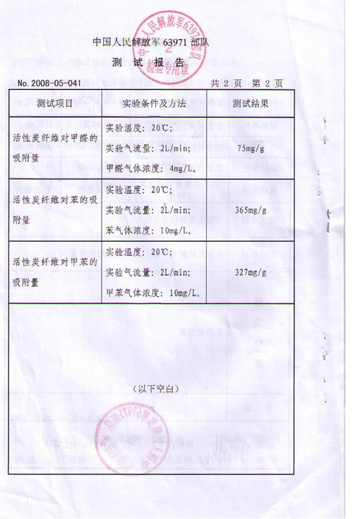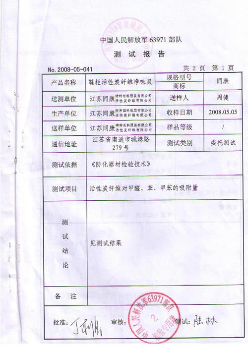 鞋柜活性炭纖維凈味靈檢測報告