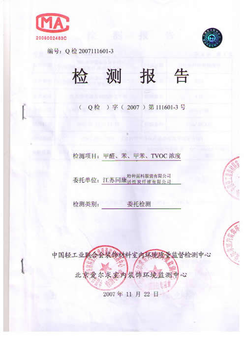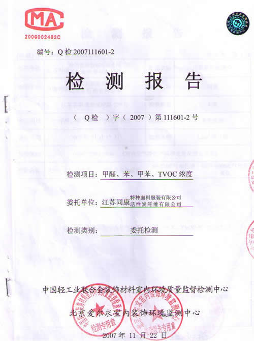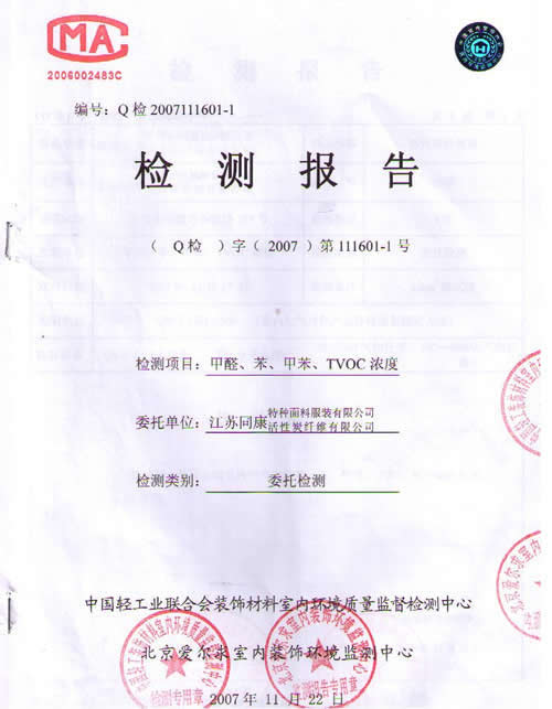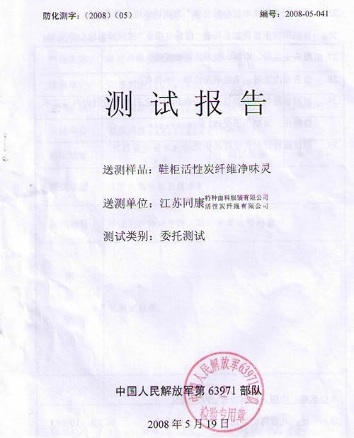 鞋柜活性炭纖維凈味靈檢測報(bào)告