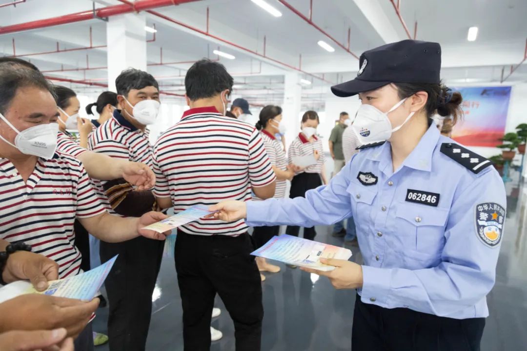 崇川公安在企業內部設置了反詐宣傳展板,民警結合反詐展品及近期高發多發的電詐案例,向企業員工介紹了反詐相關知識,并向公司員工發放了印有反詐公眾號的微信二維碼宣傳單頁。全體人員在反詐簽名墻上簽名,表達“你我同心·反詐同行”的活動熱情。
